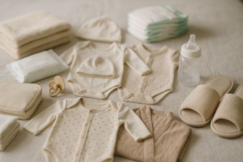 - Pour bébé : couches (1 toutes les 2 heures de sortie), lingettes ou coton + eau, un ou deux bodys/spécial change, tétine si besoin.